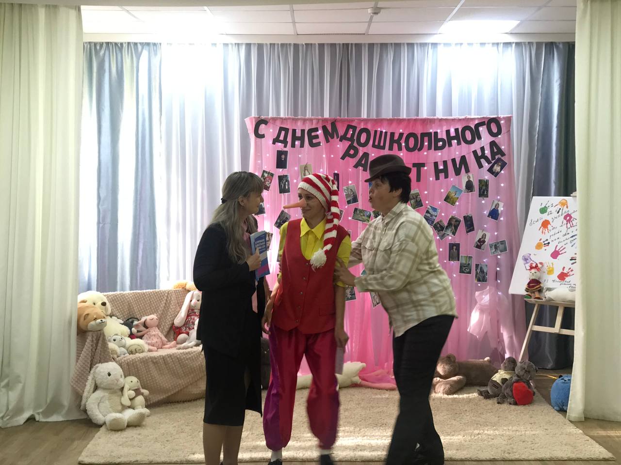 Утром музыкальный зал превратился в театральные подмостки. Главным героем праздника стал озорной и любознательный Буратино (блестяще сыгранный одним из наших педагогов), которого привел Папа Карло в детский сад. Ребята помогали герою адаптироваться к детскому саду. Каждый номер – это был маленький подарок, подготовленный ребятами вместе с музыкальным руководителем и воспитателями. Дети пели трогательные песни о детском саде и воспитателях, читали стихи, в которых звучала искренняя благодарность за их тепло и заботу.