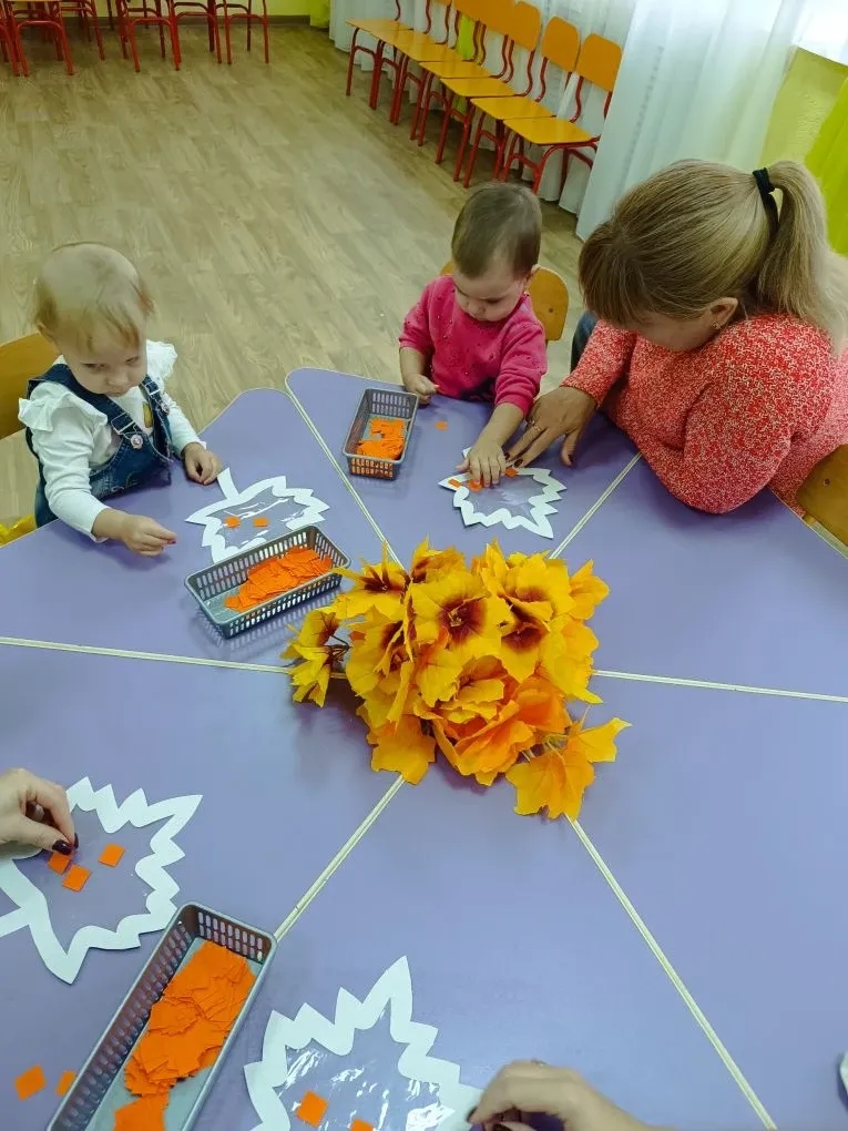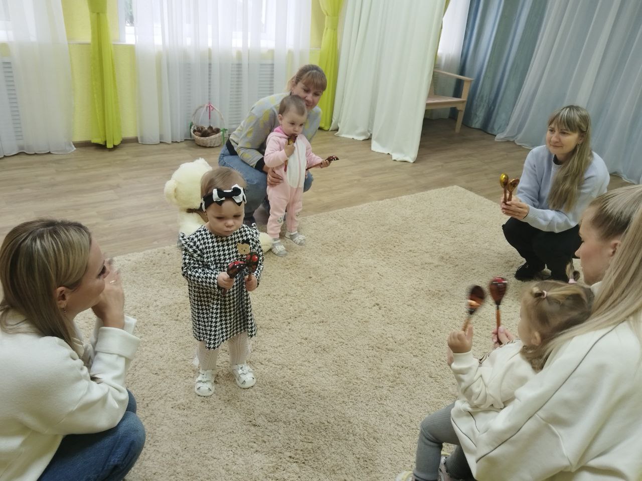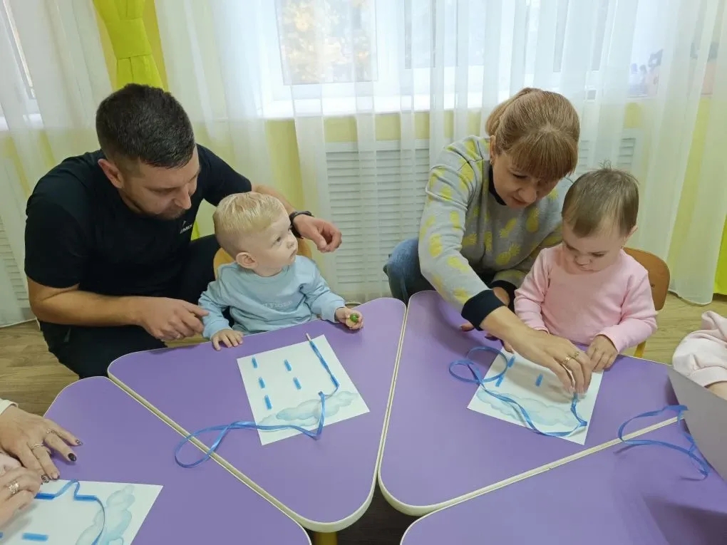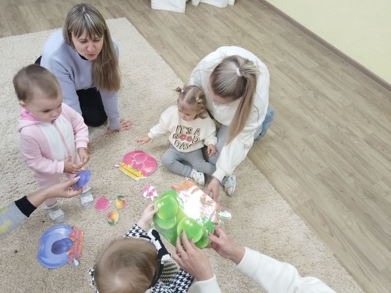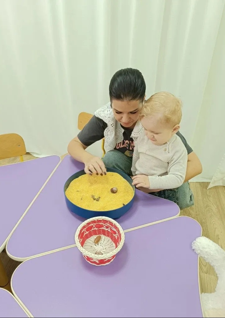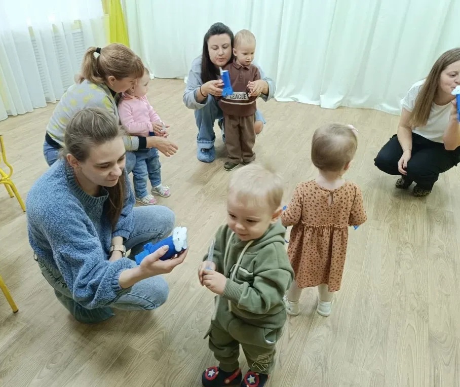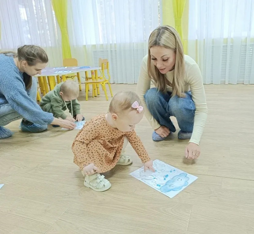 Во время занятий ребенок имеет возможность познакомиться с детским садом, играть, двигаться, общаться с незнакомыми ему ранее детьми и взрослыми. Старший воспитатель Арефина Олеся Викторовна, педагог Меньшикова Анна Алексеевна и музыкальный руководитель Чечеко Татьяна Николаевна проводят интегрированную деятельность, вовлекают малышей в игру и начинают знакомить с геометрическими формами, размером и цветом предметов, развивают речь через мелкую моторику и прививают самостоятельность.
