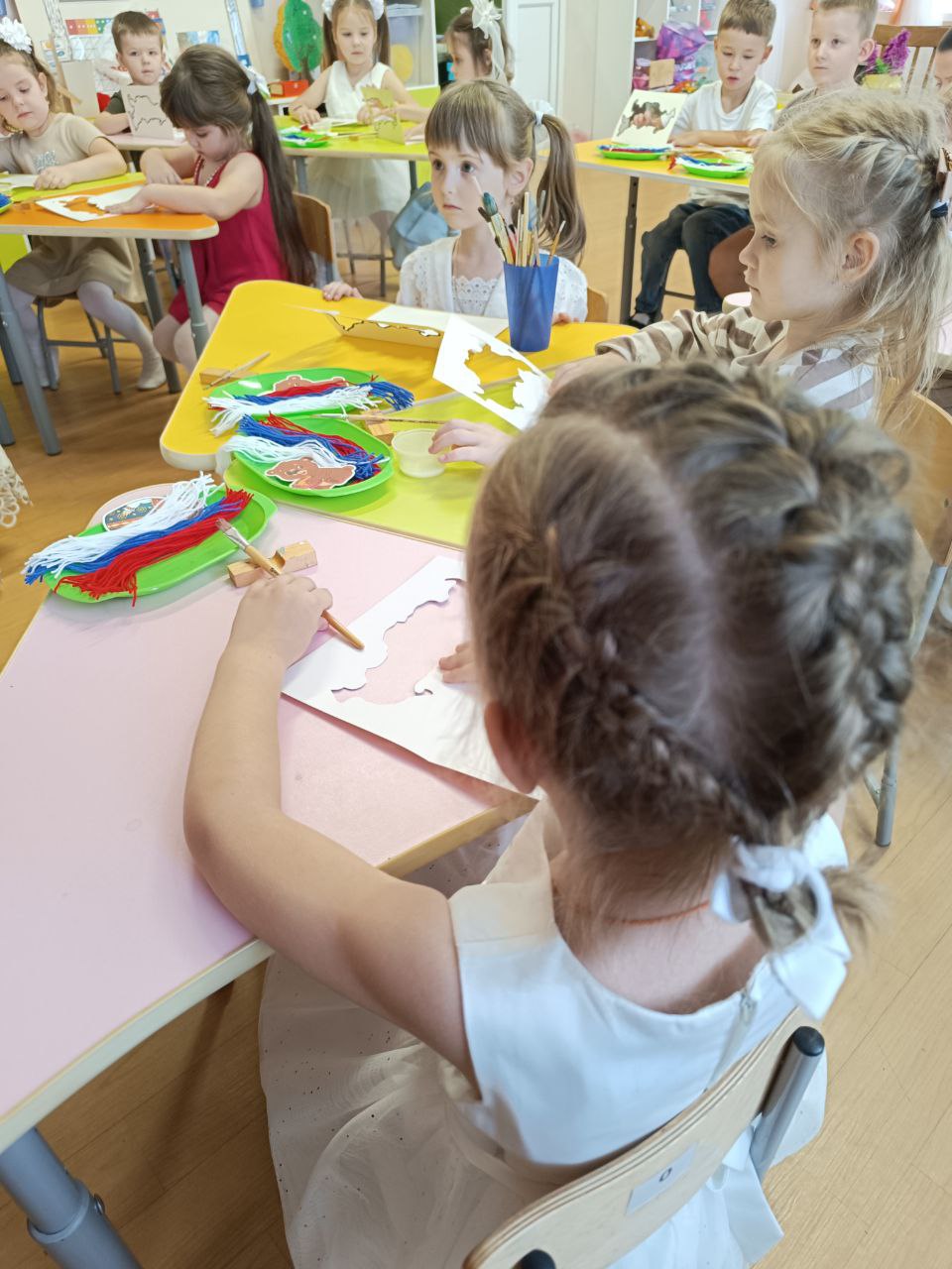 Дети с большим удовольствием мастерили коллективные работы: аппликации «Хоровод дружбы», рисовали флаг и символы России.