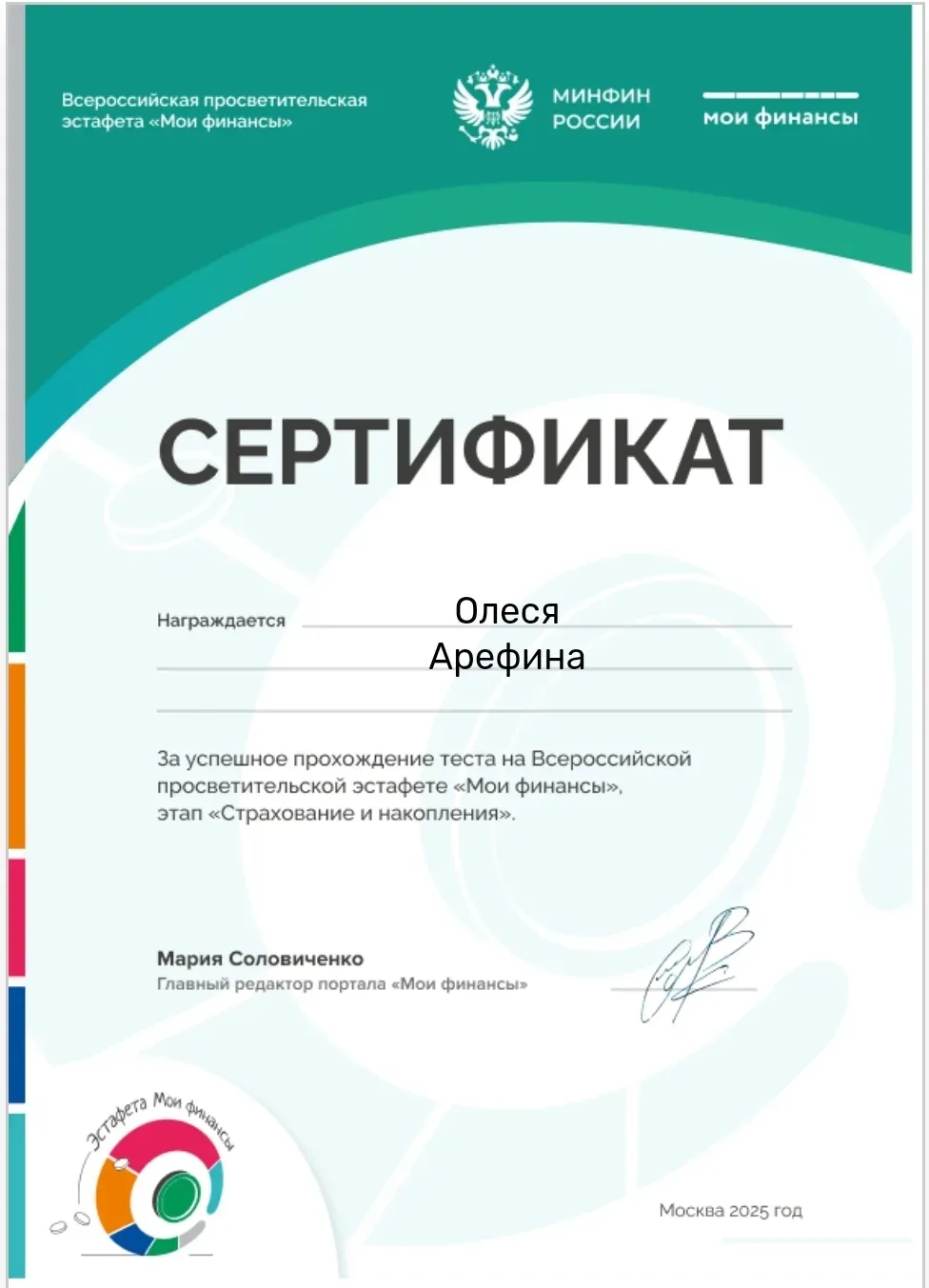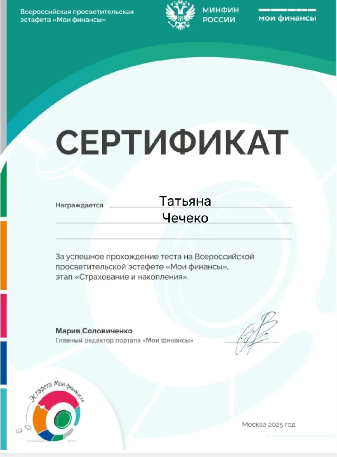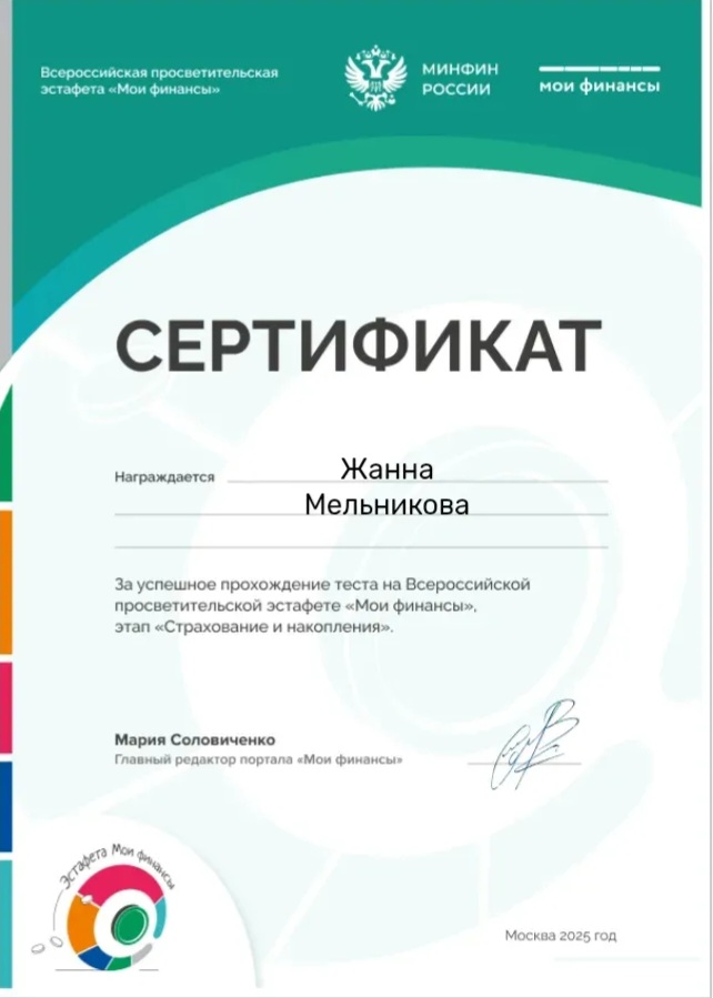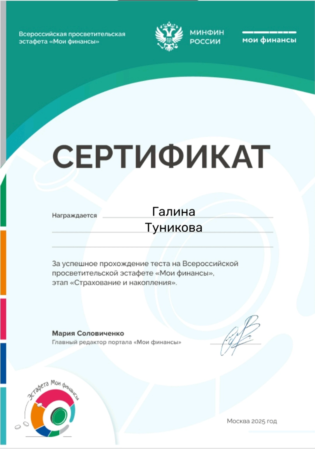 В МБДОУ - детский сад присмотра и оздоровления № 32 "Сказка" прошёл VI этап Всероссийской просветительной эстафеты "МОИ ФИНАНСЫ" — "Думай о будущем: страхование и накопления"