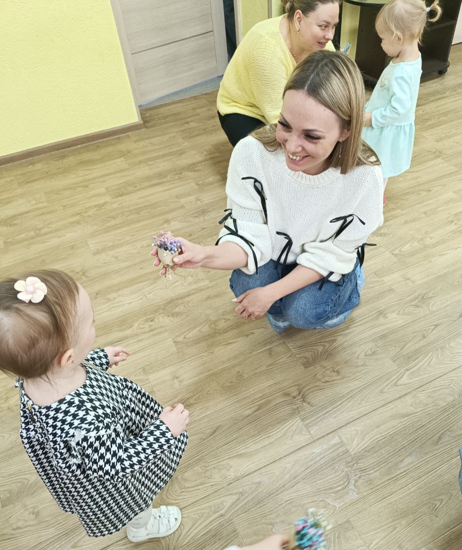 Встреча получилась, радостной, яркой и душевной. Для наших дорогих мам ребята совместно с педагогом Меньшиковой А.А. подготовили сюрприз: мини-букетики, сделанные своими руками. Ребята очень старались, несмотря на свой ранний возраст. Ведь именно сейчас их связь с мамой очень тесная и вызывает у них особые эмоции, которые способствуют развитию творческих способностей. С ранних лет малыши понимают, что все хорошее начинается с мамы. Мамы, как солнышко, согревают своим теплом, любовью, лаской и заботой.