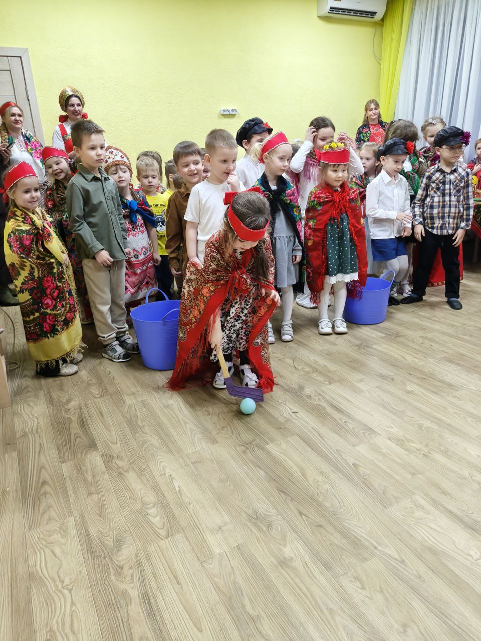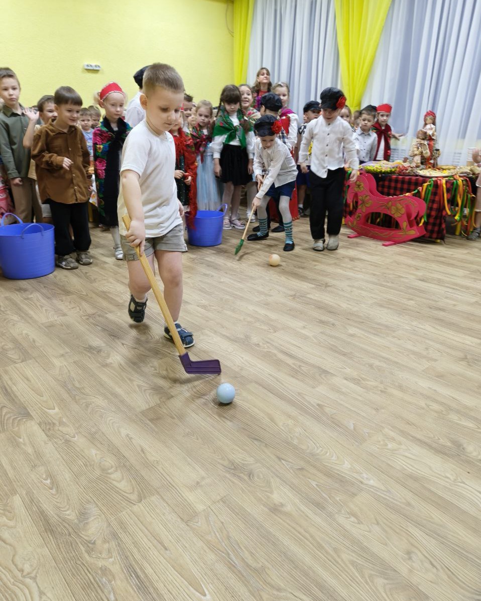 Дошколята показали свою удаль в эстафетах, спели задорные частушки и станцевали танец «Блинчики». Баба - Яга, видя такое веселье, подобрела и даже научила детей своему «фирменному» танцу с метлой.