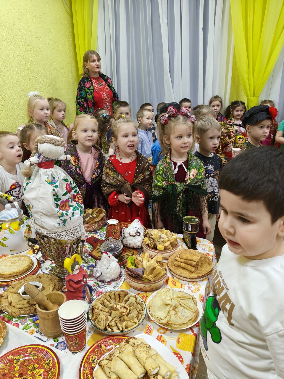 Праздник закончился традиционным чаепитием с золотистыми блинами. Родителями была организована целая съедобная выставка блинов, самых разнообразных вкусов и форм.