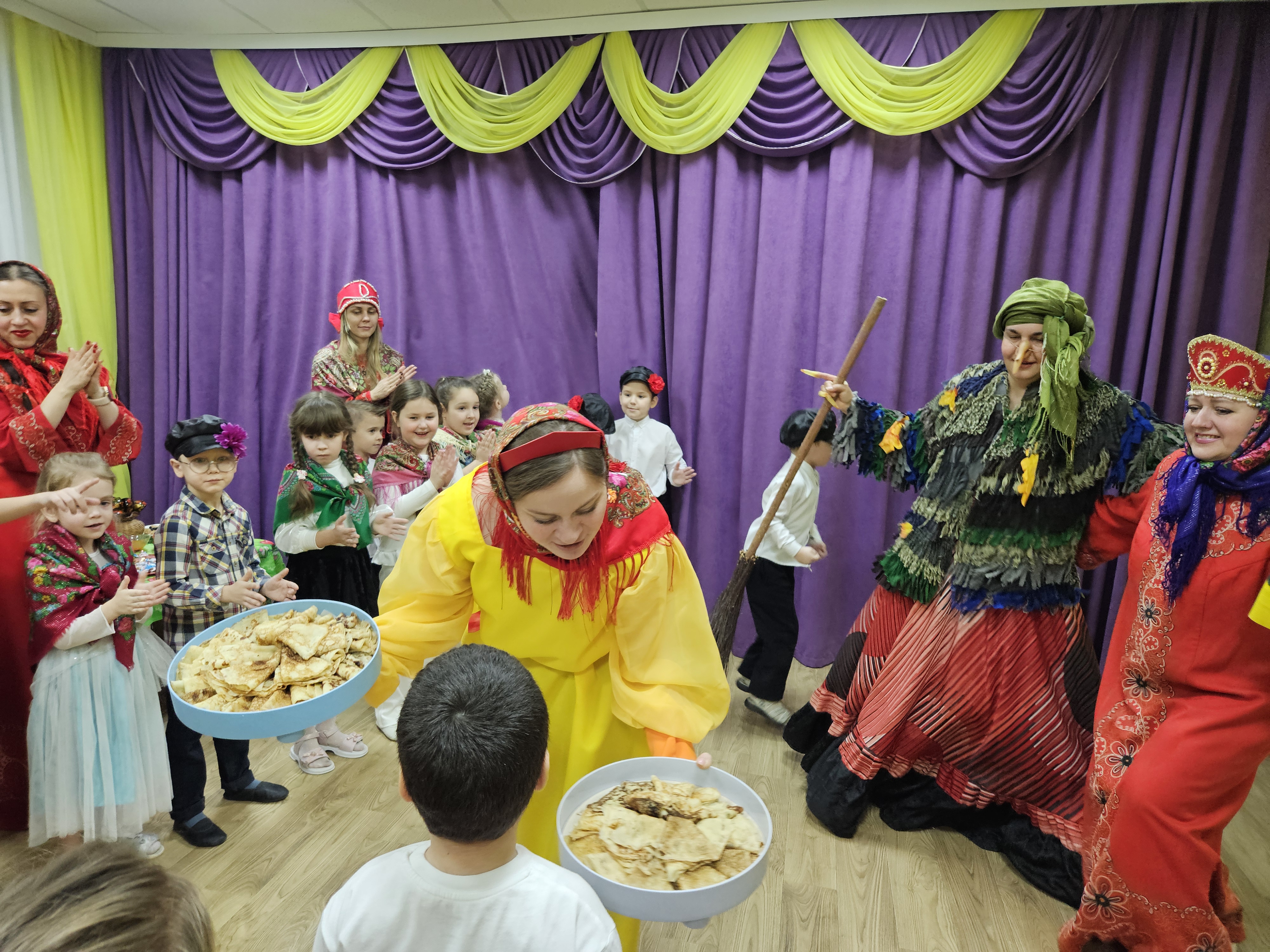 20 февраля 2026 года в МБДОУ - детский сад присмотра и оздоровления № 32 "Сказка" празднование Масленицы прошло необычно и весело. Главными действующими лицами стали Хозяйка праздника, которая знакомила детей с традициями и нежданная гостья, Баба - Яга.