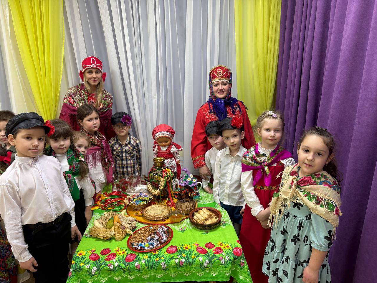 Хозяйка в красивом сарафане встречала ребят у входа, зазывала весну закличками и учила играть в старинные игры. Но веселье чуть не прервалось появлением Бабы - Яги. Лесная жительница заявила, что Весну пускать не хочет, и потребовала, чтобы все блины достались только ей. Однако Хозяйка не растерялась и предложила Яге посоревноваться с детьми в ловкости.