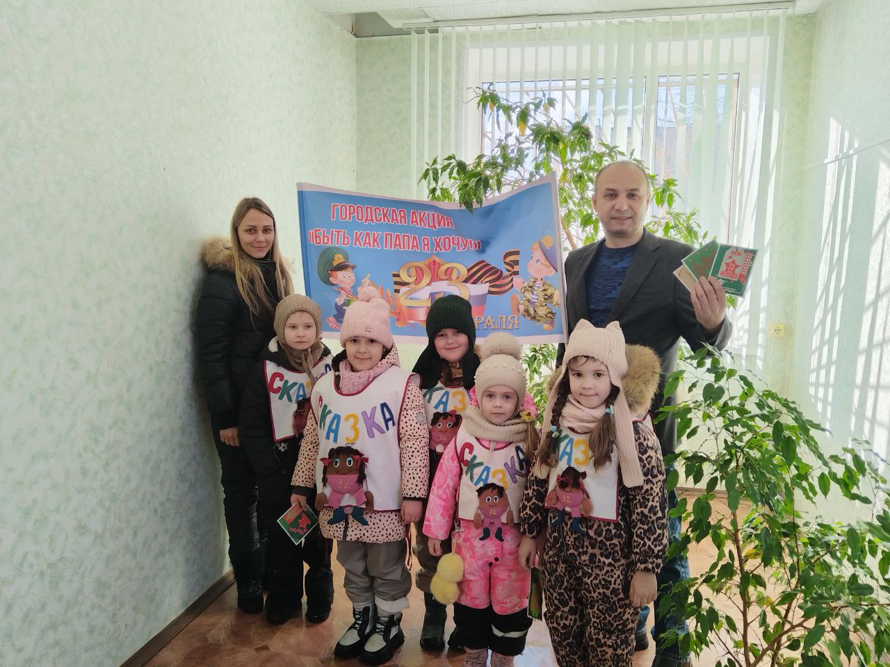 Дорогие мужчины! Поздравляем Вас с 23 Февраля! Желаем Вам всегда оставаться крепкими, сильными, здоровыми, уверенными, гордыми, храбрыми защитниками своей семьи. Желаем мира и счастья! Мы Вас любим и гордимся Вами!