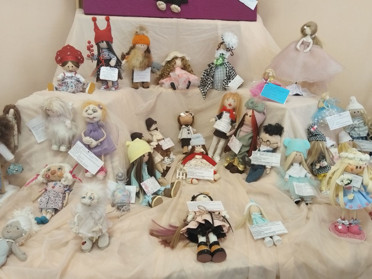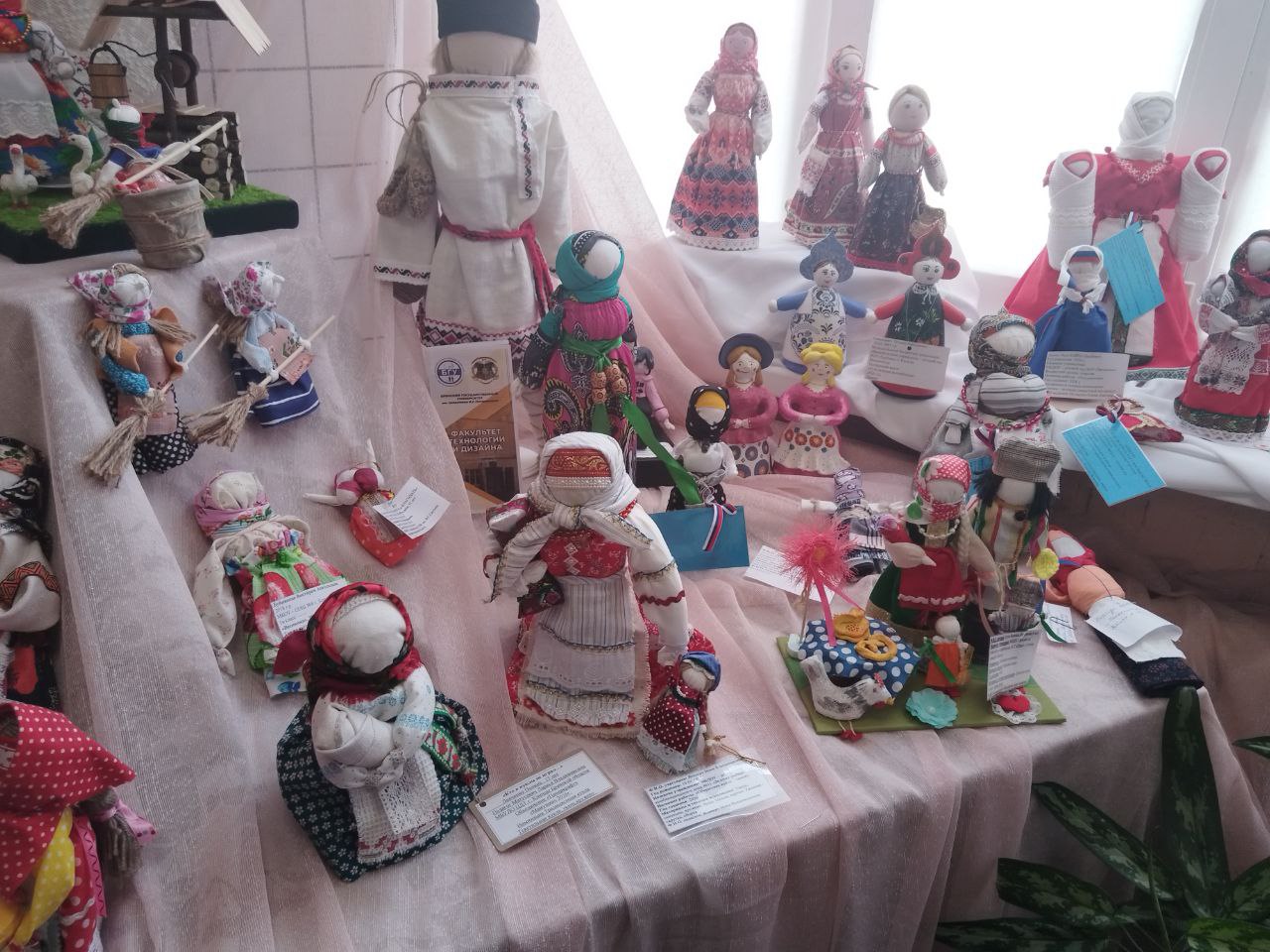 На выставке представлены удивительные куклы в национальных костюмах, обереговые, игровые куклы, тильды, а также изделия, выполненные из капрона, бумаги, глины, соломы и многих других материалов. Особое внимание привлекают современные текстильные куклы, которые радуют разнообразием форм и стилей.