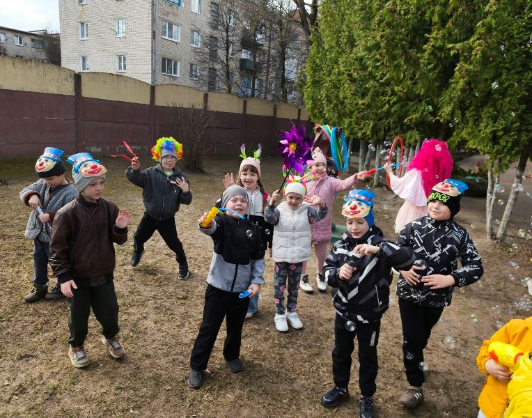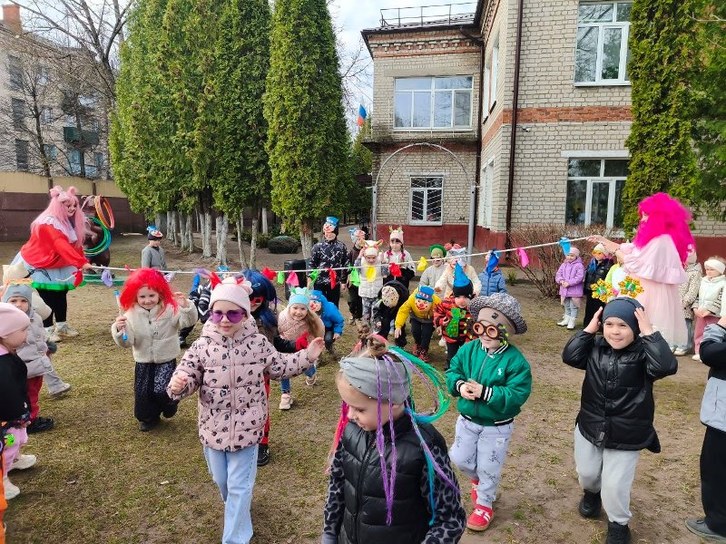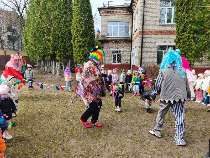 1 апреля 2026 года в нашем детском саду педагогами было организовано развлекательное мероприятие "Веселые вытворяшки" с играми, шутками, весёлыми конкурсами и танцами. Задорные клоуны Прошка и Тимошка, клоунесса Ириска с удовольствием играли с дошколятами, танцевали, участвовали в забавных эстафетах.